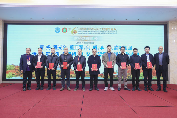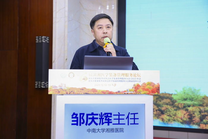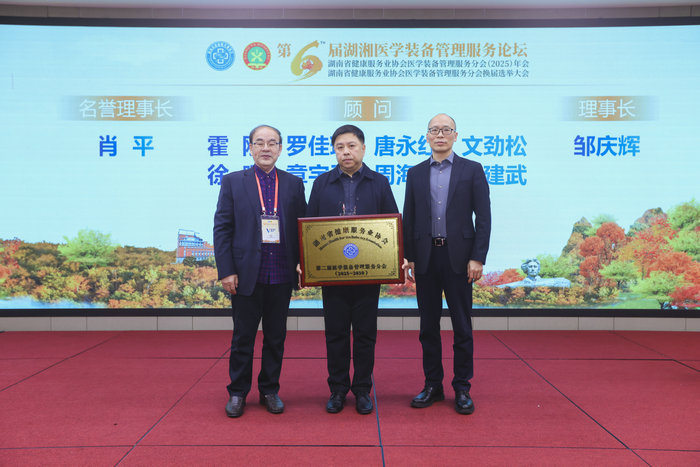 12月12—13日,由湖南省健康服务业协会联合中南大学湘雅医院共同举办的“第六届湖湘医学装备管理服务论坛暨湖南省健康服务业协会医学装备管理服务分会(2025)年会及湖南省健康服务业协会医学装备管理服务分会换届选举大会”在长沙顺利召开。中南大学湘雅医院邹庆辉主任当选湖南省健康服务业协会第二届医学装备管理服务分会理事长,来自医学装备管理相关领域200余位代表齐聚一堂,共襄盛会。