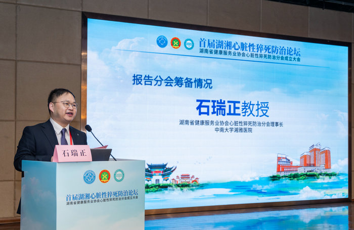 1月16-17日,由湖南省健康服务业协会主办的“首届湖湘心脏性猝死防治论坛暨湖南省健康服务业协会心脏性猝死防治分会成立大会”在常德召开。16日晚上协会支持召开选举大会,投票选举产生心脏性猝死防治分会第一届理事会成员,中南大学湘雅医院石瑞正教授当选湖南省健康服务业协会心脏性猝死防治分会理事长。会议汇聚了200余名心脏性猝死防治领域的知名专家和学者,共同探讨心脏性猝死的防治现状与未来发展方向。
