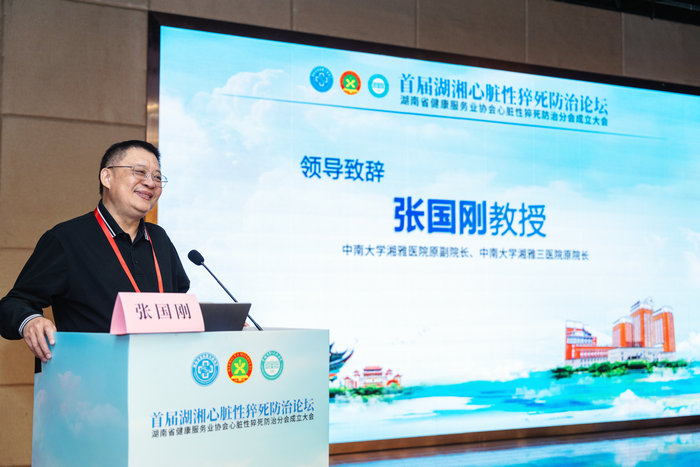 17日上午,成立大会开幕式由湖南省健康服务业协会副理事长兼秘书长伍劲健先生主持,湖南省健康服务业协会理事长李桂源教授出席并讲话。中南大学湘雅医院原副院长、中南大学湘雅三医院原院长张国刚教授,常德市第一人民医院党委书记向勇志教授,中国医学科学院阜外医院张澍教授,中山大学孙逸仙纪念医院王景峰教授分别向会议致辞,湖南省健康服务业协会心脏性猝死防治分会理事长、中南大学湘雅医院石瑞正教授报告分会筹备情况。