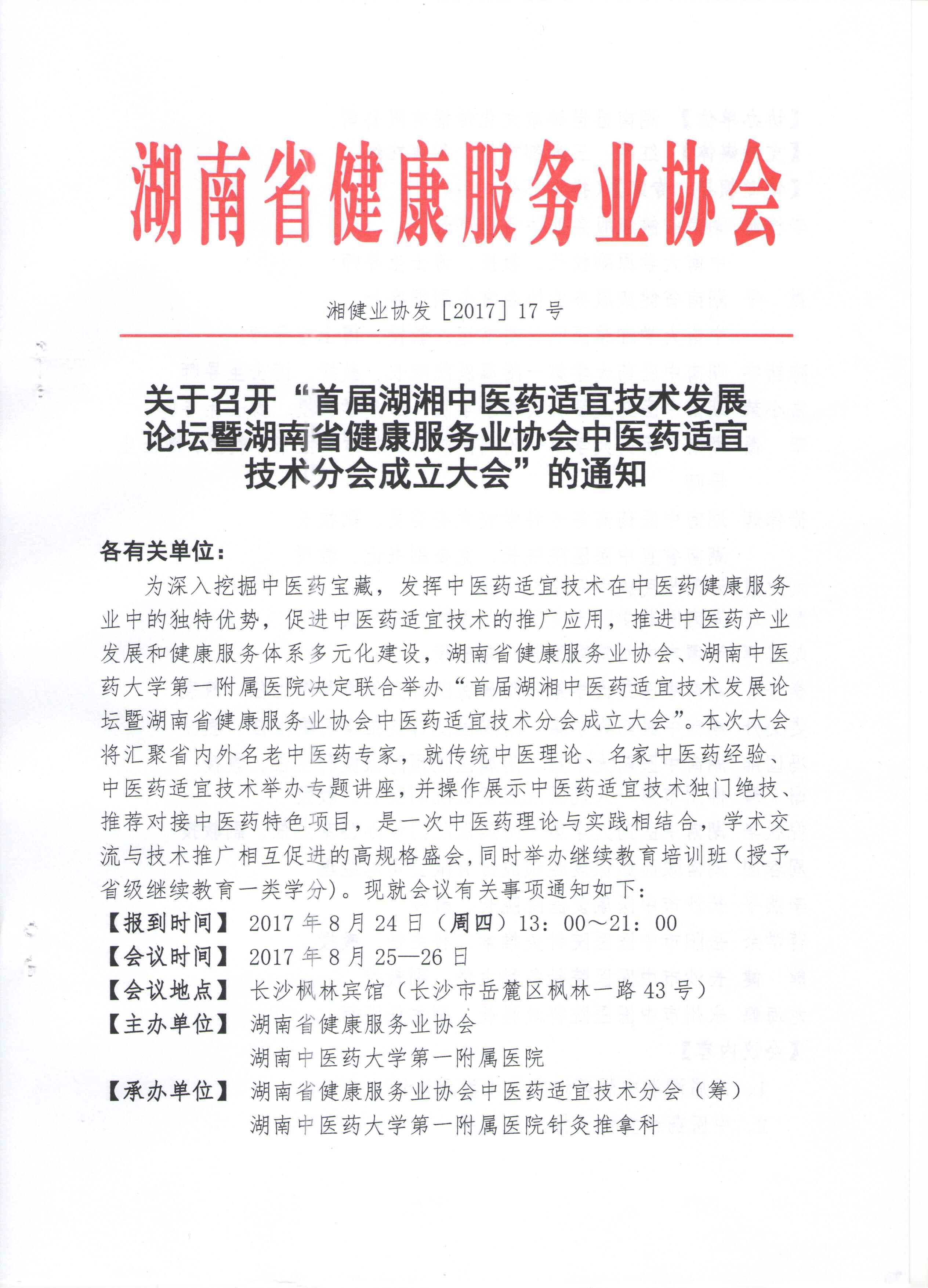 下一篇:关于召开“第三届湖湘营养与健康高峰论坛暨湖南省健康服务业协会安全与健康食品分会成立大会及湖南省健康服务业协会营养健康分会(2017)年会(临床营养技能交流学习班)”的通知
