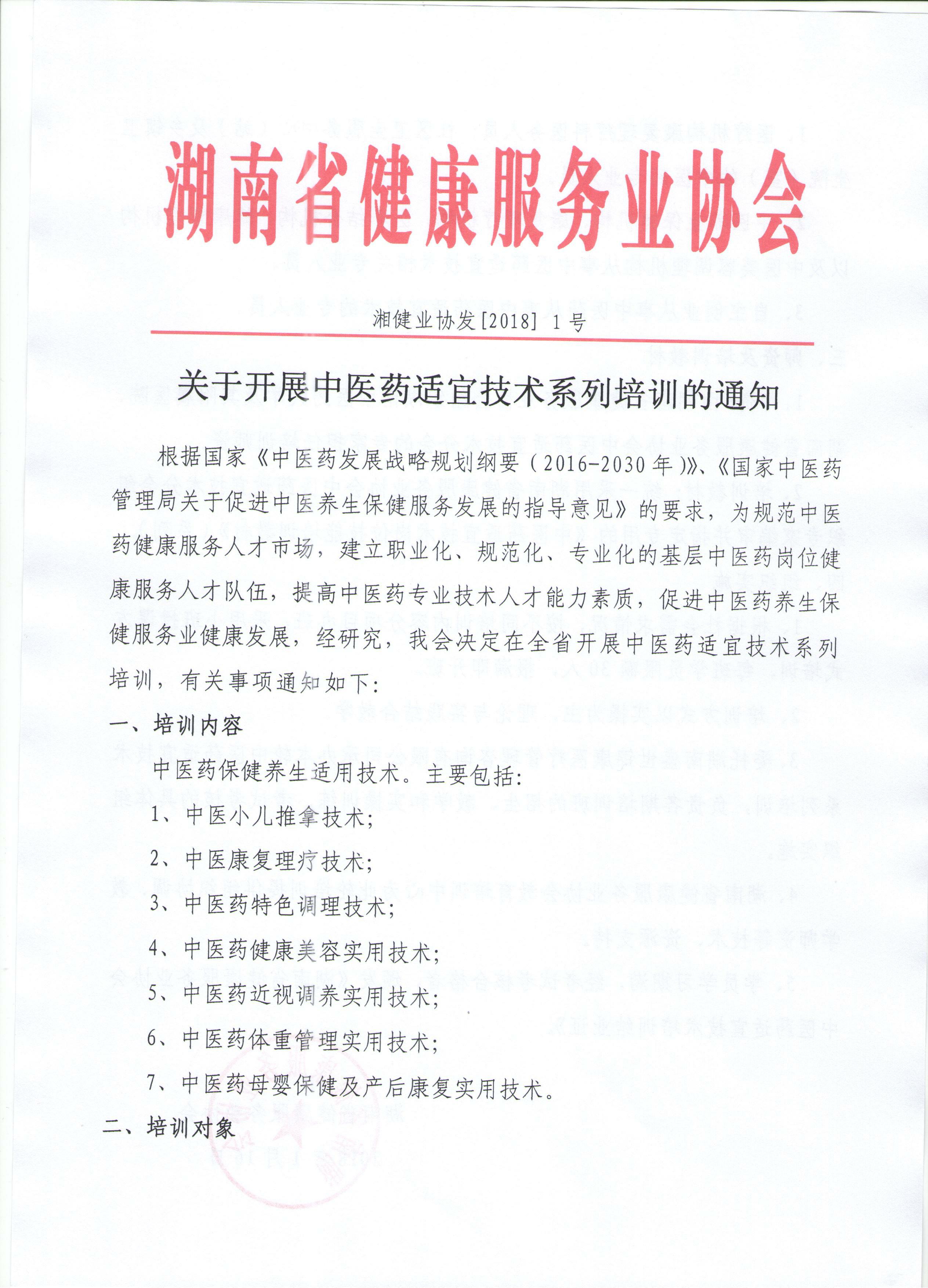 关于召开中医适宜技术系列培训的通知