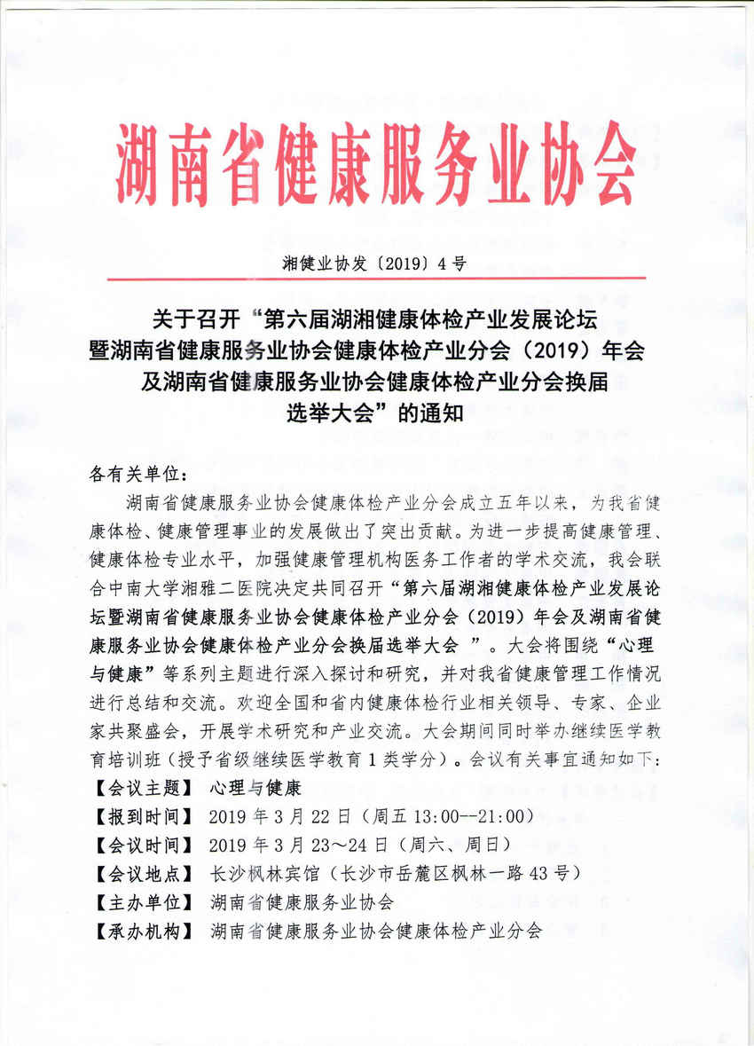 下一篇:关于召开第四届湖湘医卫检验高峰论坛暨湖南省健康服务业协会医卫检验分会(2019)年会的通知