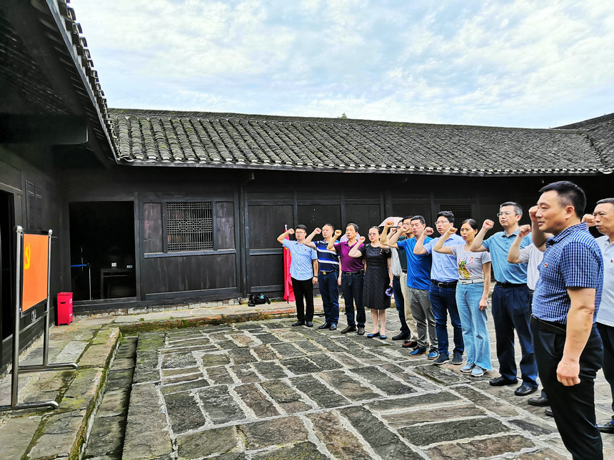 在帅孟奇同志故居前,肖平同志带领全体党员重温了入党誓词,大家用高昂、奋进而又庄严的誓词表达了对党的忠诚和热爱。
