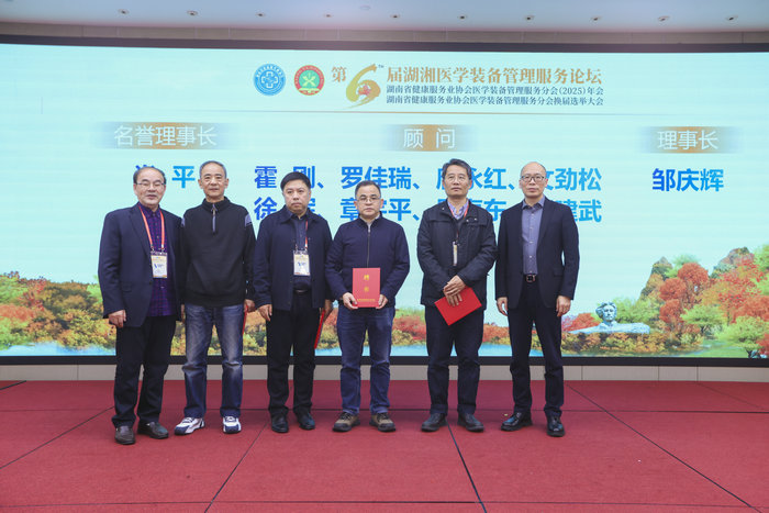 12月12—13日,由湖南省健康服务业协会联合中南大学湘雅医院共同举办的“第六届湖湘医学装备管理服务论坛暨湖南省健康服务业协会医学装备管理服务分会(2025)年会及湖南省健康服务业协会医学装备管理服务分会换届选举大会”在长沙顺利召开。中南大学湘雅医院邹庆辉主任当选湖南省健康服务业协会第二届医学装备管理服务分会理事长,来自医学装备管理相关领域200余位代表齐聚一堂,共襄盛会。